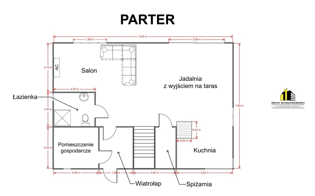 - pomieszczenie gospodarcze z piecem gazowym dwufunkcyjnym odpowiedzialnym za ogrzewanie całego budynku.