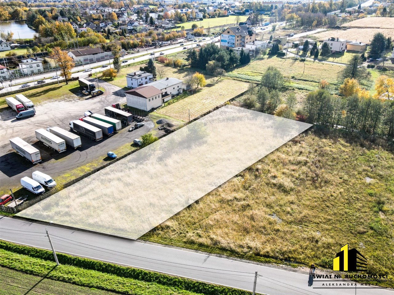 - Działka stanowi doskonałą inwestycję dla dewelopera — idealna pod realizację osiedla kameralnych domów, zabudowy mieszkaniowo-usługowej lub obiektu rekreacyjnego.