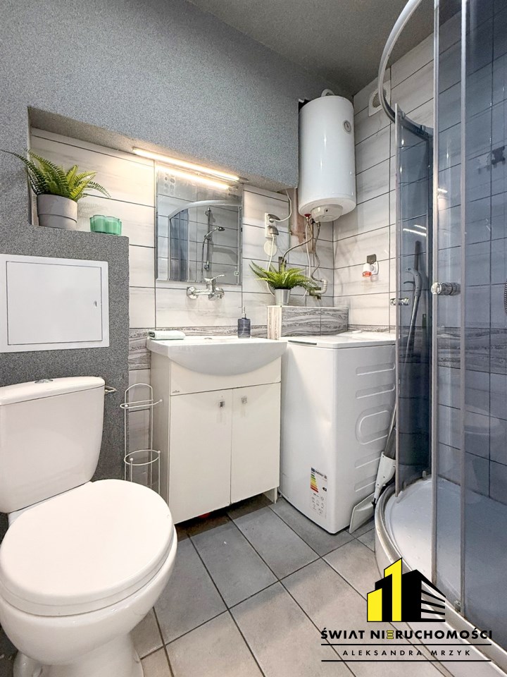 Kuchnia w pełni umeblowana wraz z lodówką, łazienka wyposażona wraz z pralką. Mieszkanie gotowe do zamieszkania lub odświeżenia według własnej wizji.
