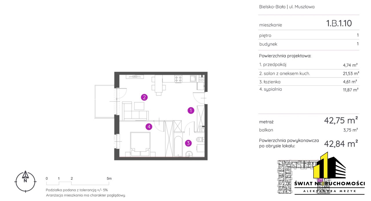 Na sprzedaż mieszkanie 2-pokojowe o powierzchni 42,84 m² w stanie deweloperskim, zlokalizowane w malowniczej dzielnicy Trzy Lipki w Bielsku-Białej. Mieszkanie znajduje się w spokojnej okolicy na pierwszym piętrze, otoczonej zielenią, co zapewnia idealne warunki do relaksu na łonie natury. Jednocześnie, dzięki doskonałej lokalizacji, z łatwością można dotrzeć do centrum miasta, które znajduje się w niewielkiej odległości.