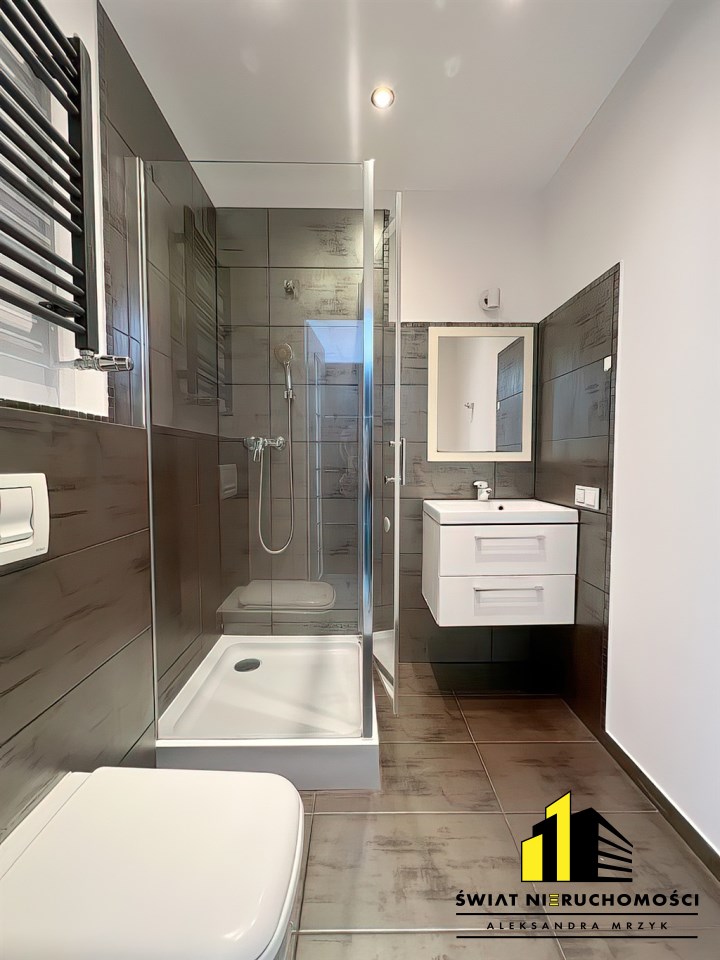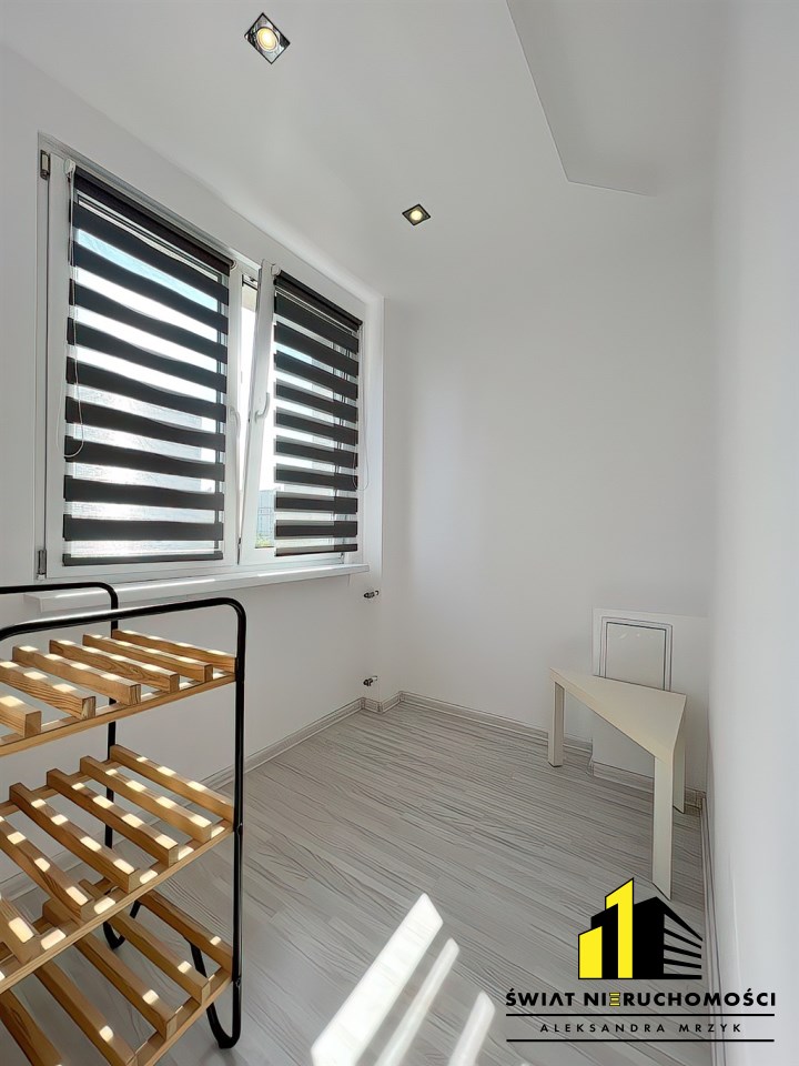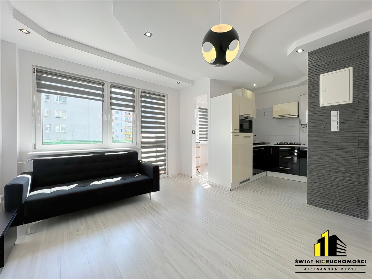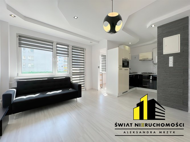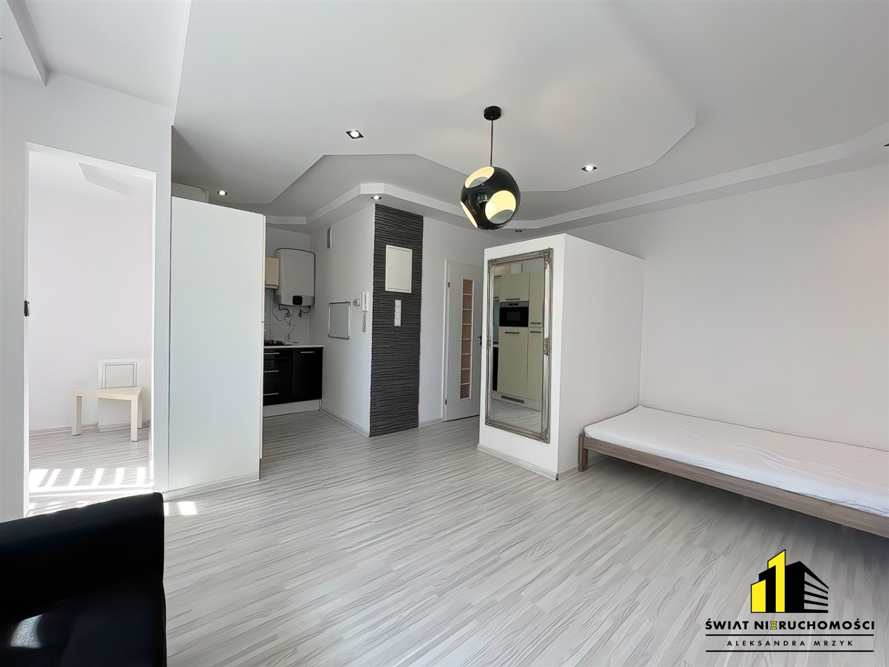Mieszkanie z wnęką którą można wykorzystać na część sypialną, częściowo wyposażone w kuchni m.in. lodówka zabudowana, pralka, mikrofalówka, płyta gazowa, okap. W salonie meblościanka pod tv. Obecnie jest inna niż na widocznym zdjęciu. W łazience prysznic, umywalka, wc. W przedpokoju szafa zabudowana.