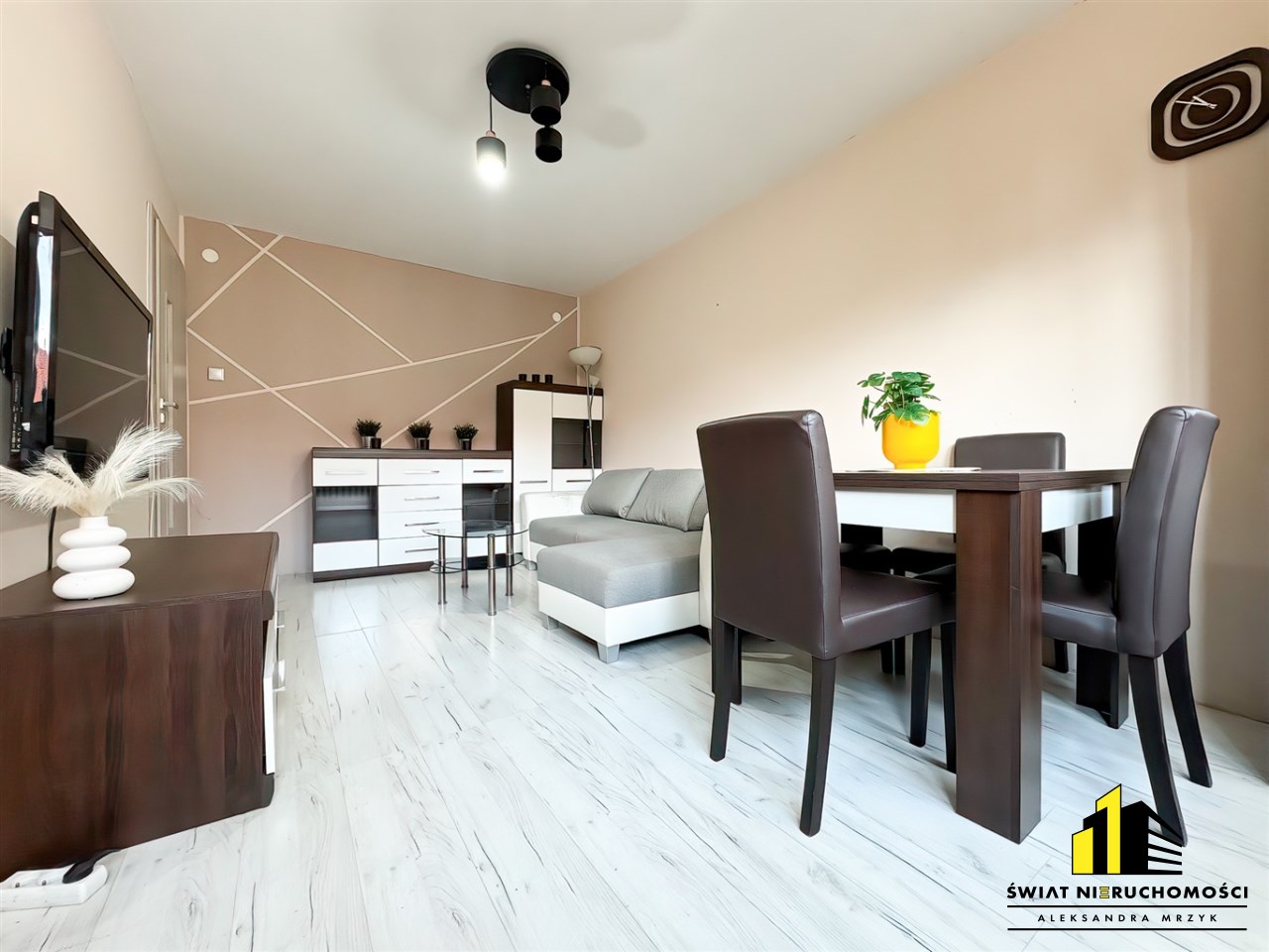 - Salon połączony z aneksem kuchennym wyposażonym w niezbędne AGD