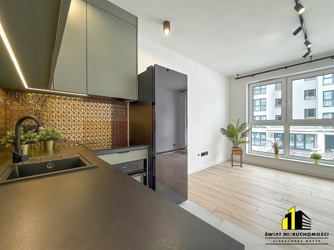 Układ typu studio pozwala na wygodne zagospodarowanie strefy wypoczynkowej i jadalnianej w jednej, dobrze doświetlonej przestrzeni. Lokal idealnie sprawdzi się dla jednej osoby lub pary.