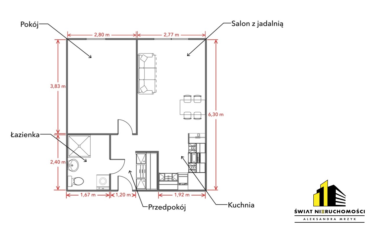 - dwa pokoje z aneksem kuchennym,