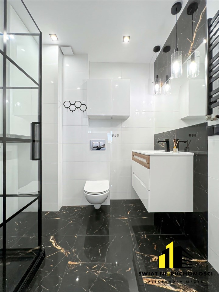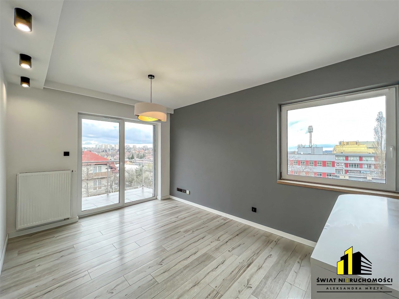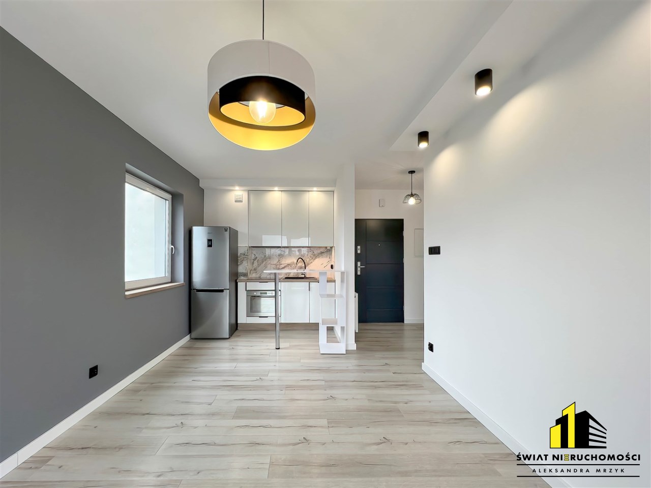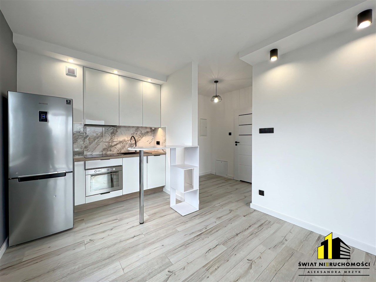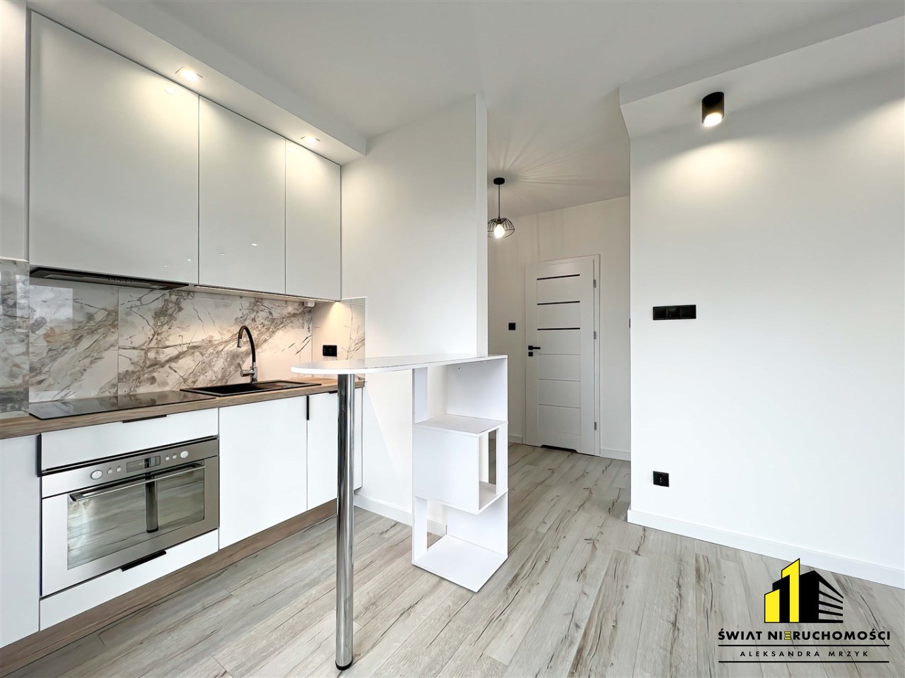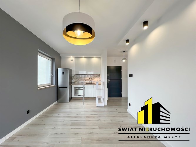 Lokal składa się z przestronnego salonu z aneksem kuchennym, sypialni oraz łazienki. Salon jest jasny i ustawny, z wyjściem na balkon, który zapewnia dodatkową przestrzeń do odpoczynku na świeżym powietrzu. Kuchnia wyposażona została w wysokiej jakości sprzęt AGD: zmywarkę, piekarnik i lodówkę. W sypialni znajduje się wygodne łóżko oraz pojemna szafa. Łazienka została wykończona w nowoczesnym stylu i wyposażona w pralkę. Mieszkanie jest w pełni wyposażone, gotowe do zamieszkania.