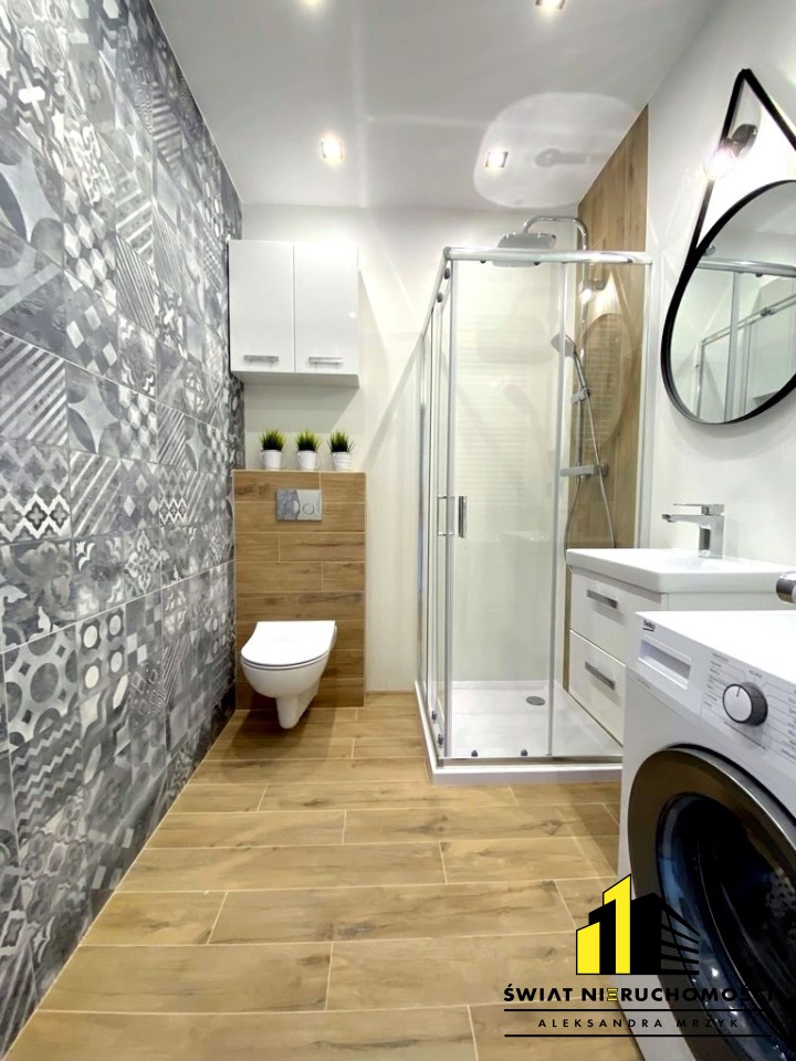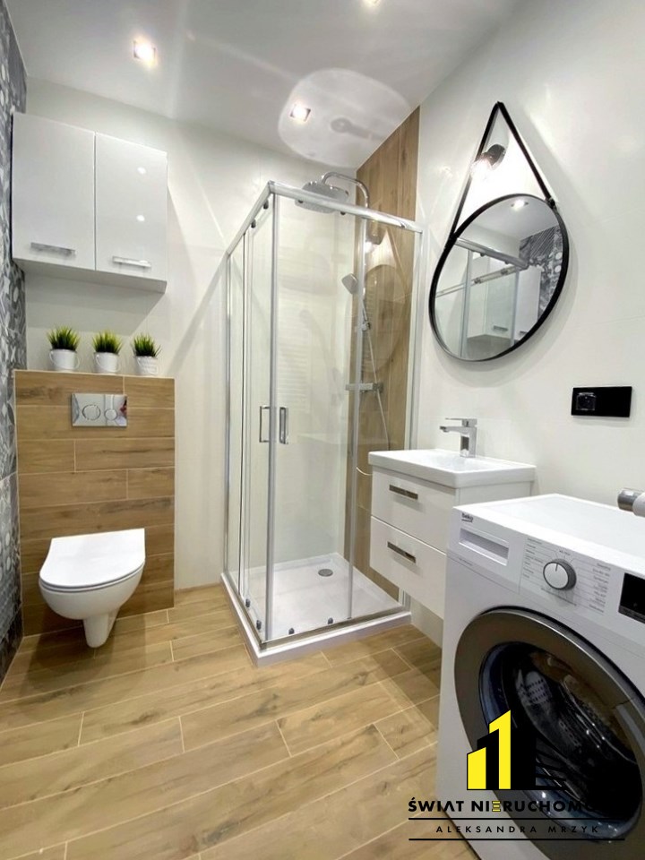 Mieszkanie jest wykończone w wysokim standardzie, częściowo umeblowane i wyposażone. W pełni wyposażona kuchnia oraz łazienka zawierają nowoczesne sprzęty AGD, co umożliwia wygodne i natychmiastowe zamieszkanie.