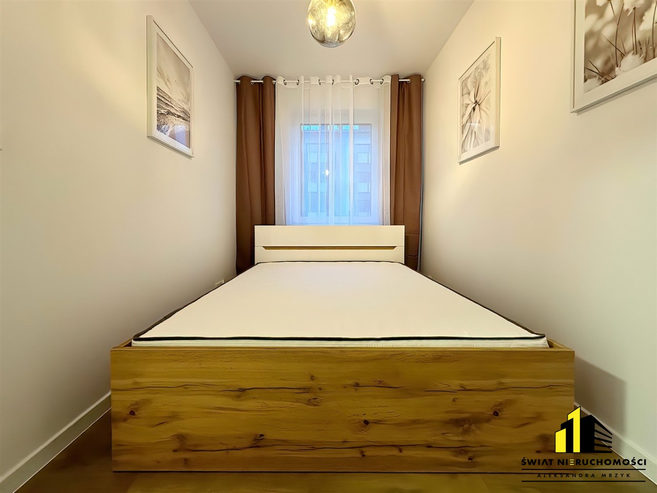 - Sypialnia – łóżko wraz z nowym materacem, szafa zabudowana.
