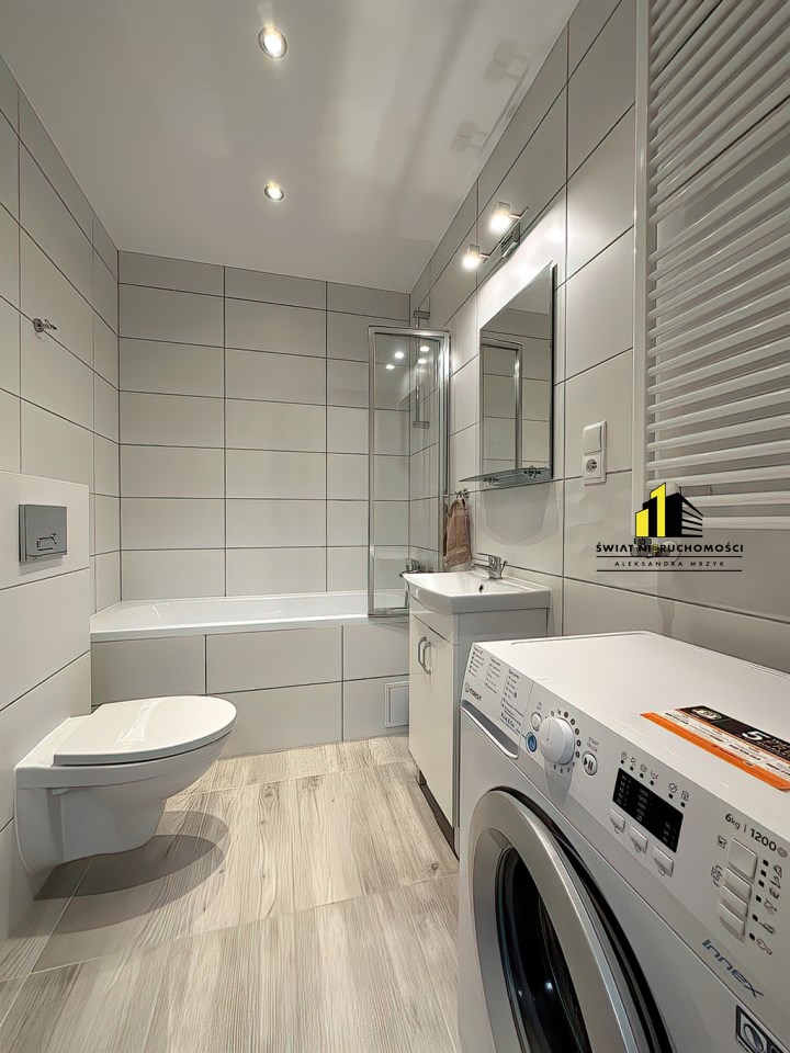 • łazienka z WC, wyposażona m.in. w wannę i pralkę,
