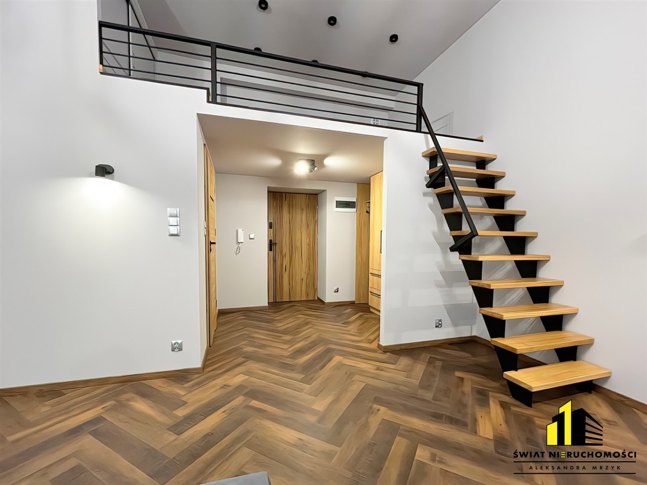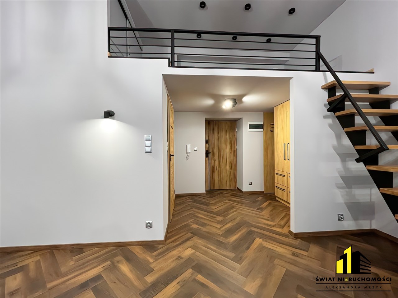 Do wynajęcia nowoczesny apartament o powierzchni ok. 35 m² z antresolą, zlokalizowany na 1. piętrze odrestaurowanej kamienicy w ścisłym centrum miasta.