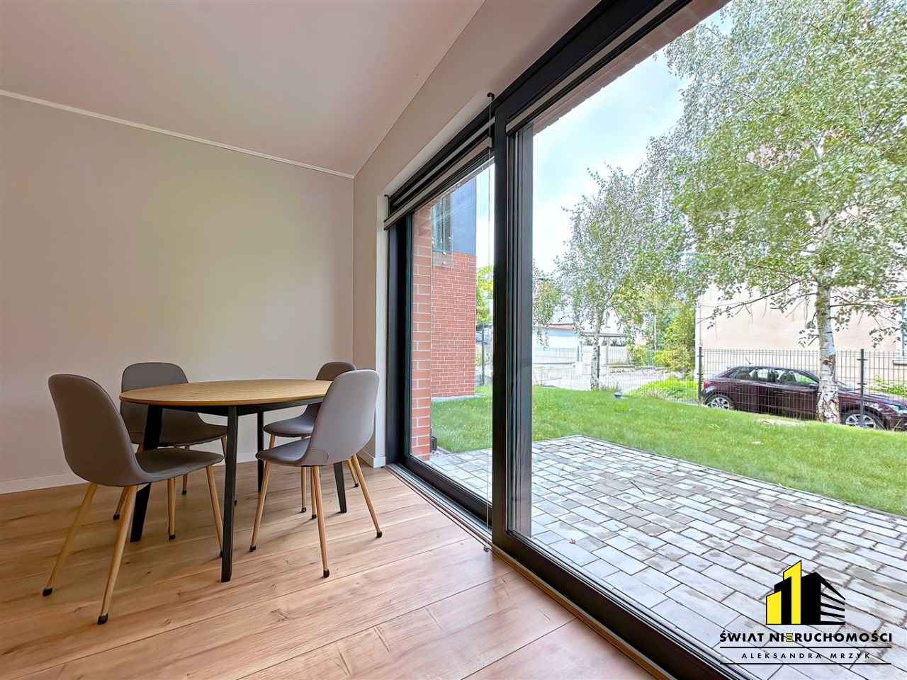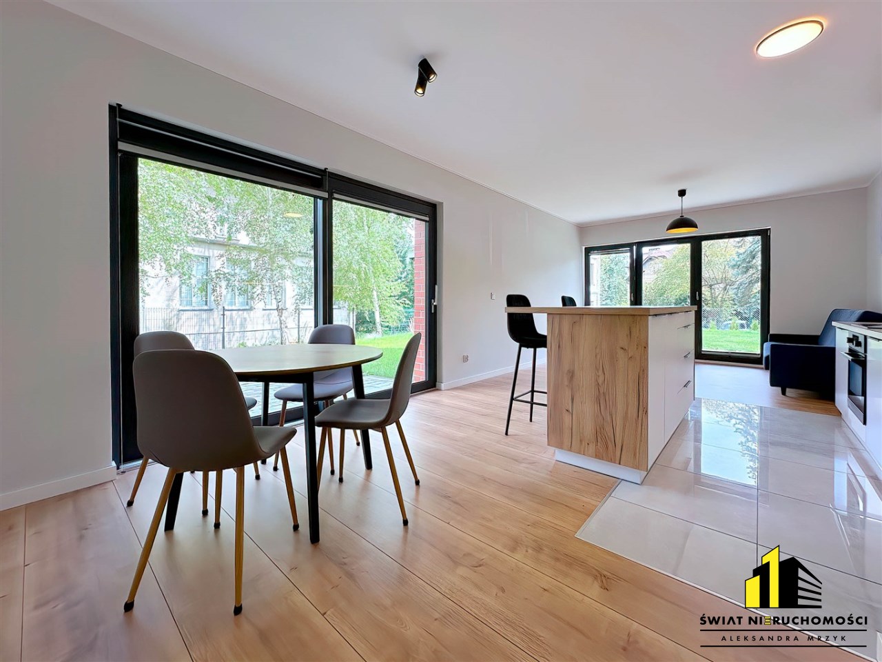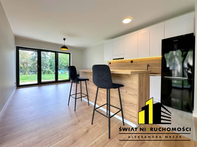 Układ mieszkania: - Duża sypialnia: z wyjściem na ogródek. Kuchnia z jadalnią: Nowoczesna kuchnia z pełnym wyposażeniem AGD. Przestronna jadalnia, doskonała do codziennych posiłków i spotkań. Salon: Przestronny i jasny, z wygodnym miejscem do wypoczynku i wyjściem na ogródek. Łazienka: Elegancko wykończona, z dużą kabiną prysznicową. Ogródek: Duży, prywatny, dostępny z sypialni, jadalni oraz salonu.