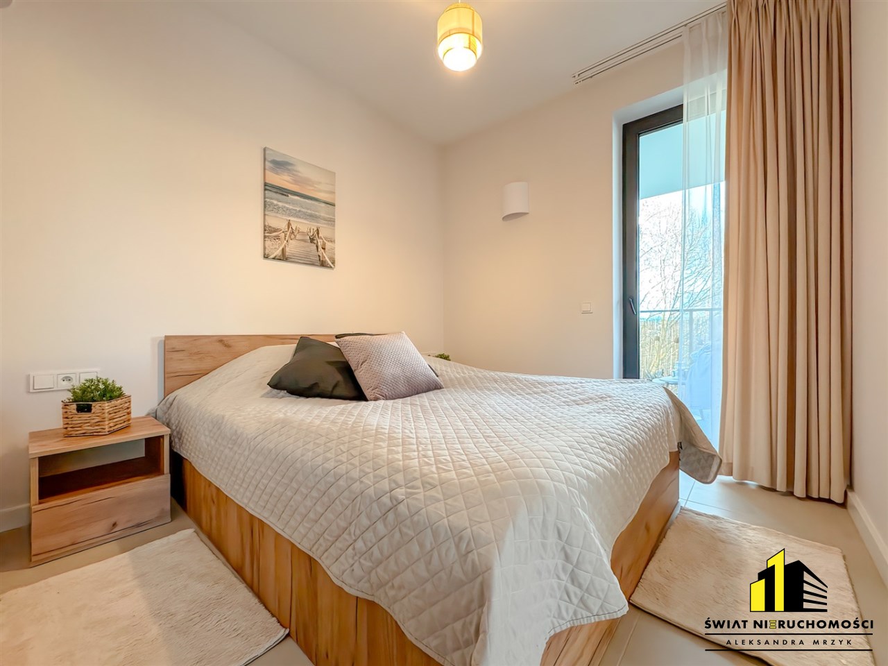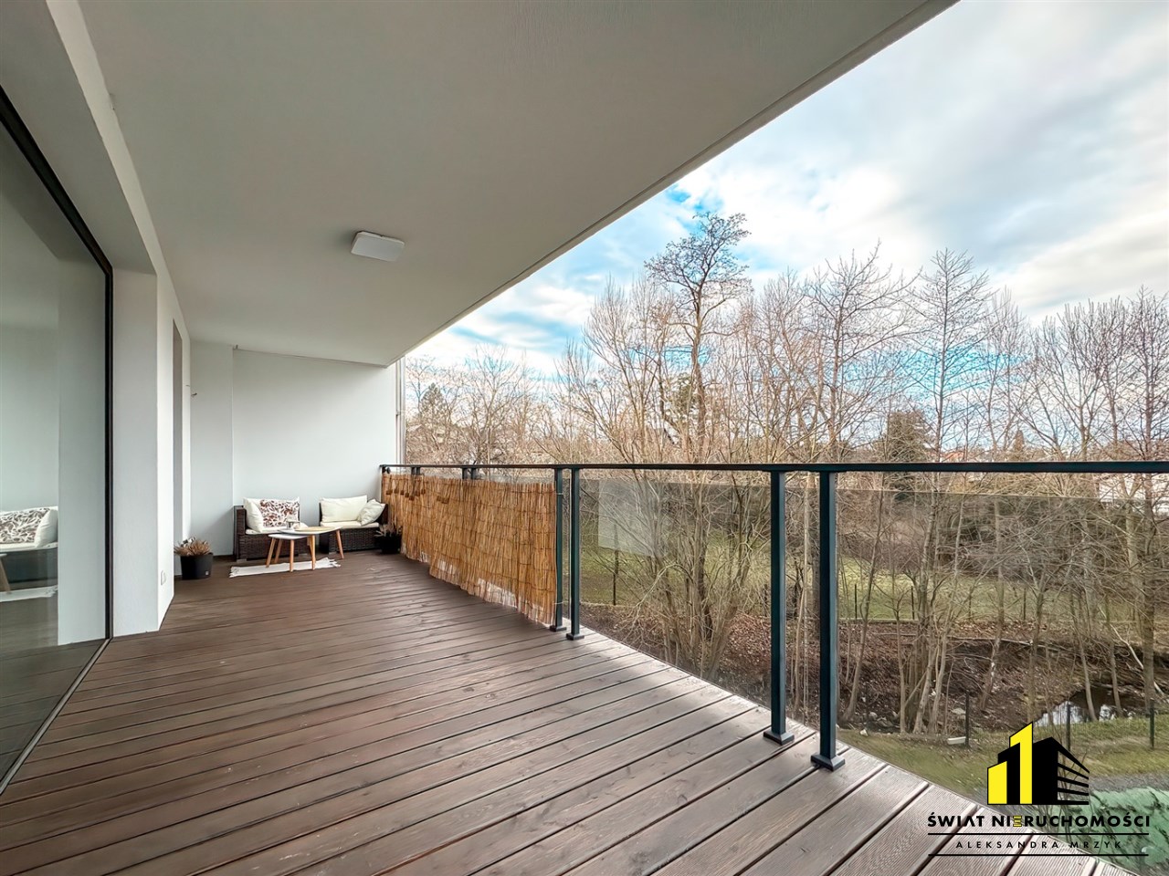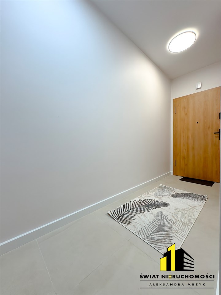 Apartament składa się z przestronnego salonu z aneksem kuchennym, komfortowej sypialni oraz funkcjonalnej łazienki. Do mieszkania przynależy duży balkon o powierzchni 20 m², idealny do relaksu na świeżym powietrzu. W budynku znajduje się winda, a także możliwość korzystania z miejsc parkingowych w garażu podziemnym.