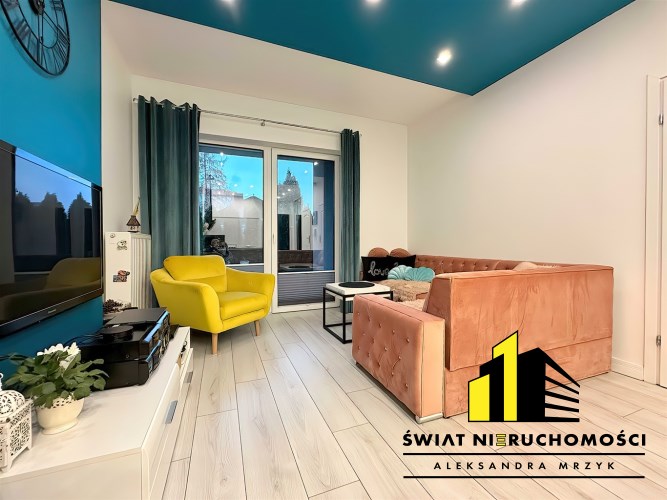 Mieszkanie składa się z sypialni, salonu z aneksem kuchennym, łazienki i przedpokoju łączna powierzchnia 43,4m2, mieszkanie posiada wyjątkowy taras 17m2.