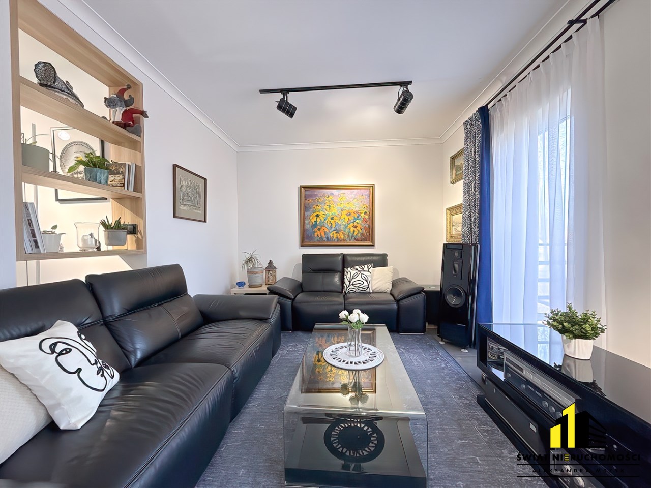 Wnętrze zaprojektowano w sposób bardzo funkcjonalny, łącząc nowoczesny design z komfortem codziennego użytkowania. Zastosowano przeszklenia, meble na wymiar oraz przemyślane rozwiązania, które podkreślają elegancki i spójny charakter całego mieszkania.