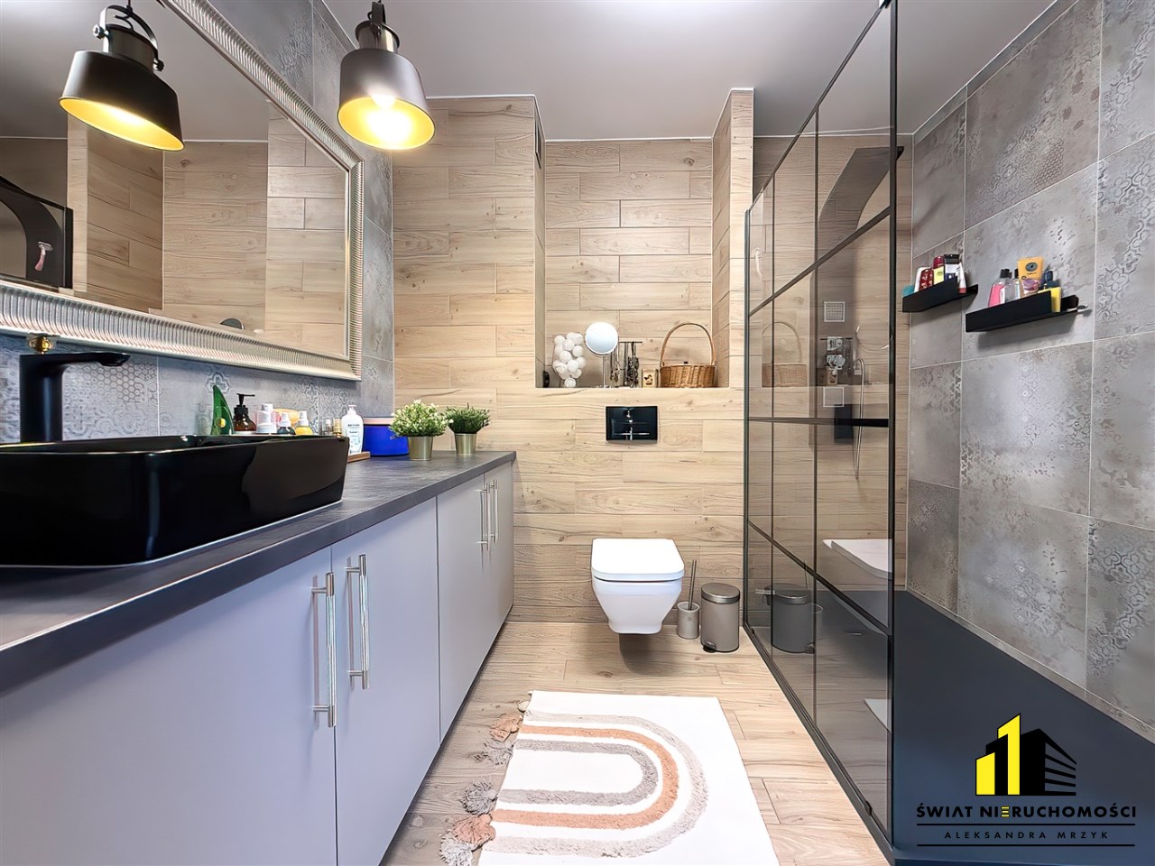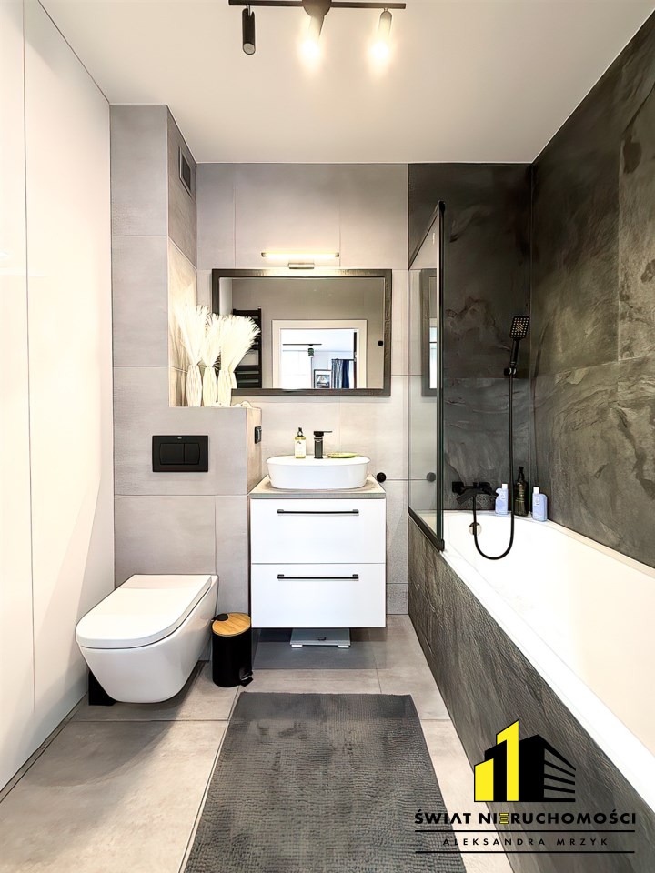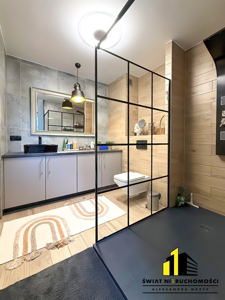 - łazienka z toaletą – nowoczesna, funkcjonalna, wykończona w wysokim standardzie