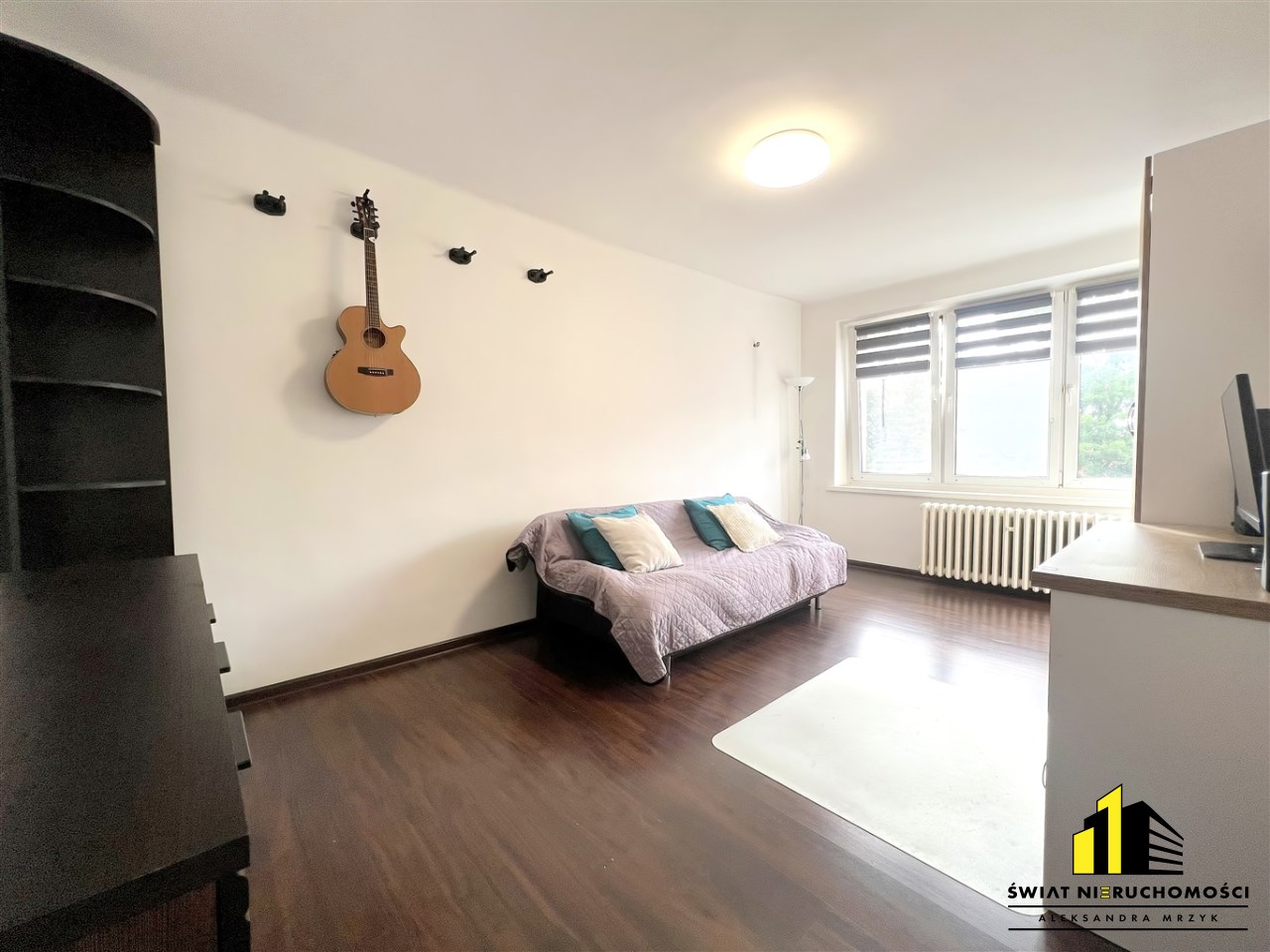 • Salon: rozkładana wersalka, komoda, szafka RTV, półka rogowa