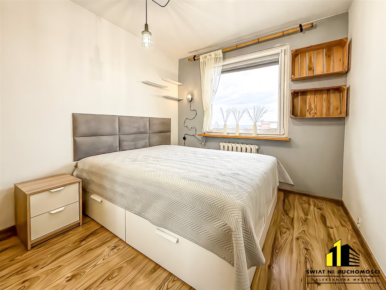 przy ul. Koziej w Bielsku Białej. Mieszkanie położone jest na czwartym piętrze w zadbanym budynku niedaleko centrum handlowego Sarni Stok. Lokal jest wyposażony i gotowy do zamieszkania od zaraz.
