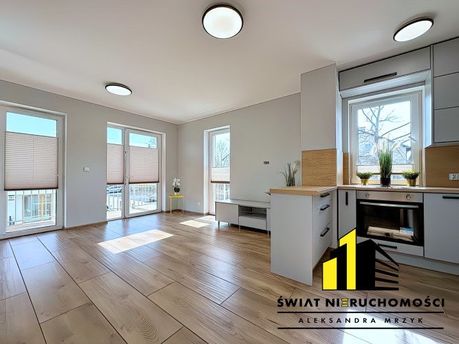 Kawalerka o powierzchni 31 m2 jest częściowo umeblowana i wyposażona w lodówkę, pralkę, piekarnik oraz płytę indukcyjną. Mieszkanie składa się z pokoju połączonego z aneksem kuchennym, garderoby oraz łazienki z WC. Posiada również duży balkon, idealny do relaksu na świeżym powietrzu.