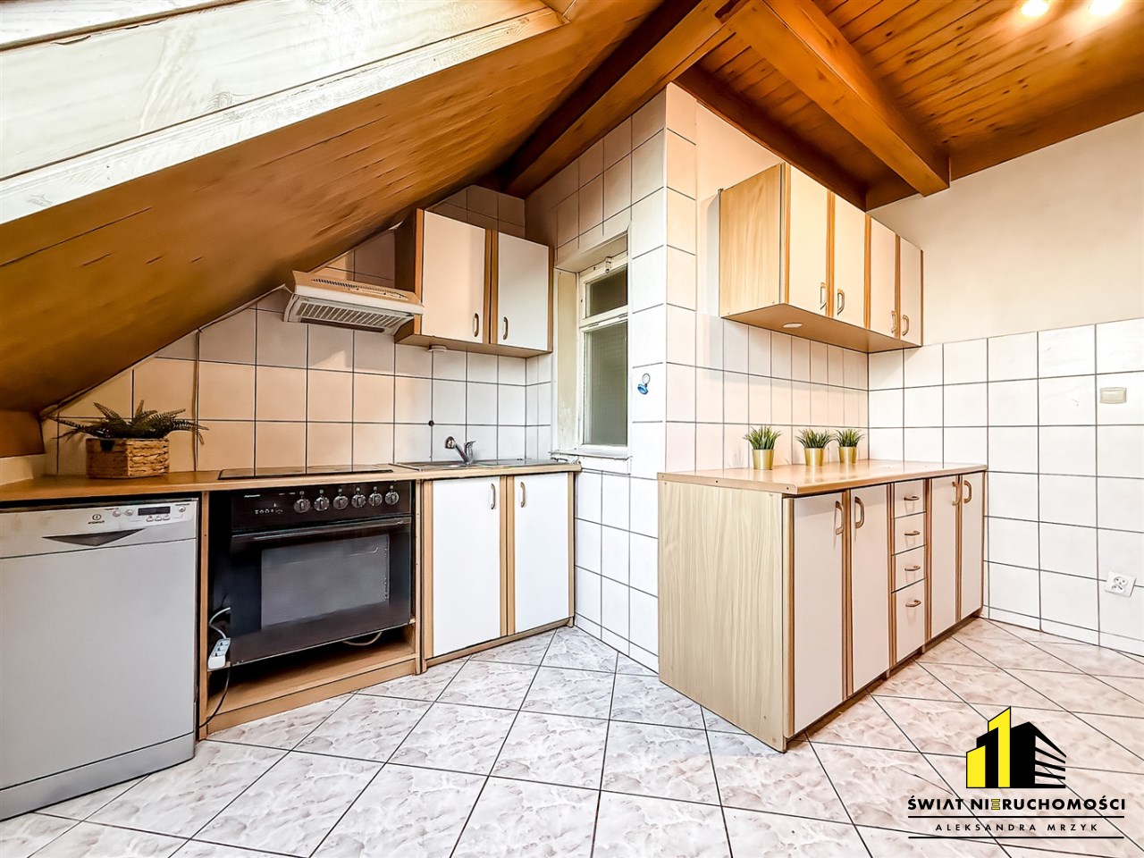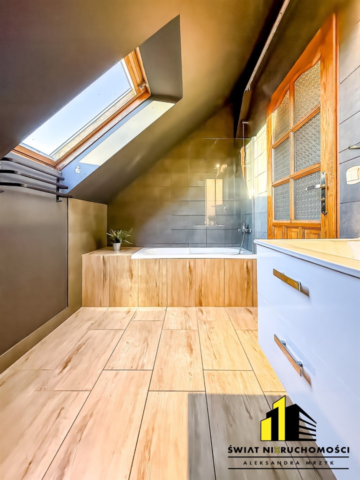 Do wynajęcia mieszkanie o powierzchni ok 104 m², położone na poddaszu kameralnej, sześciolokalowej kamienicy z cegły z lat 50. Budynek znajduje się na ogrodzonej działce o powierzchni prawie 10 arów przy ul. Jeżynowej w Bielsku-Białej, w cichej i zielonej części miasta.