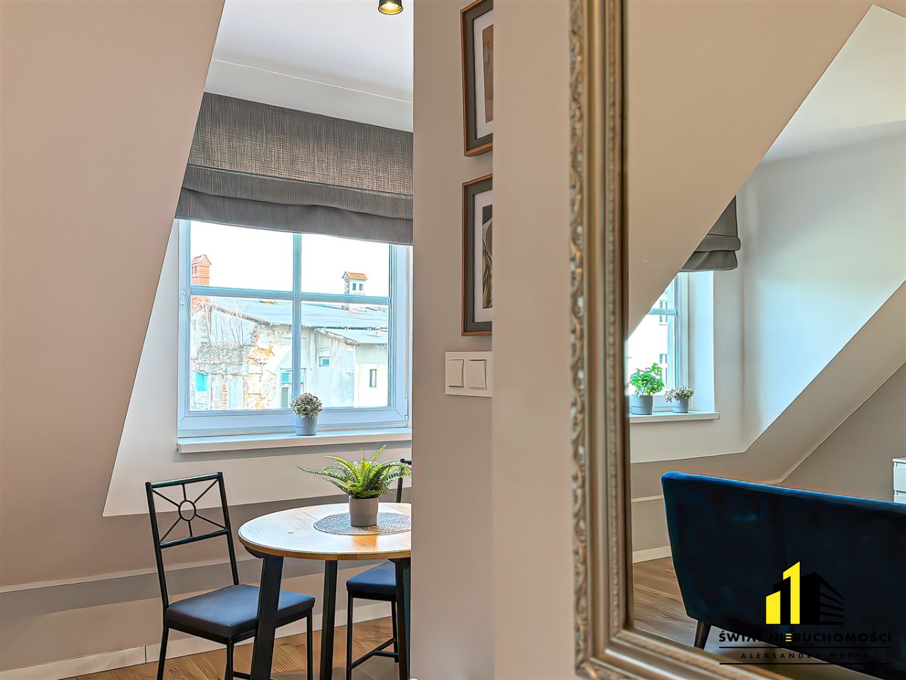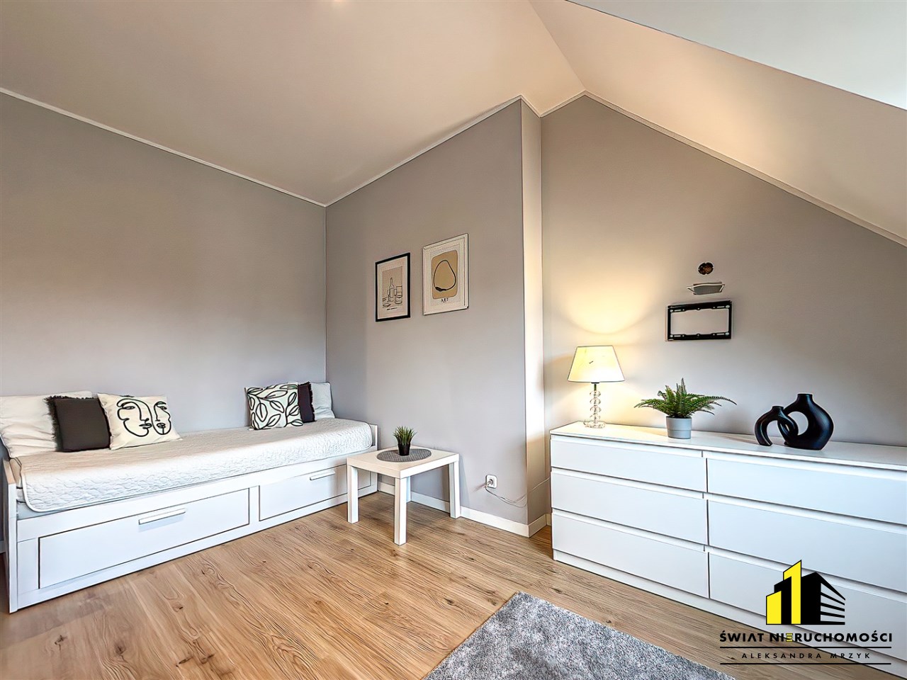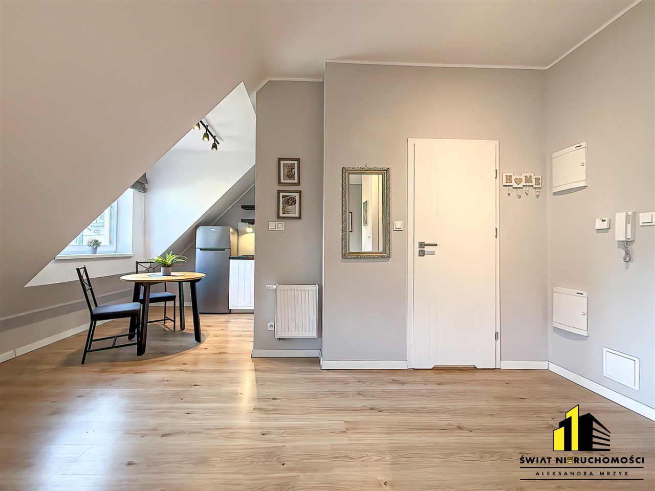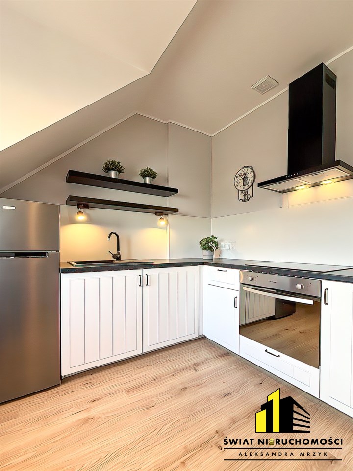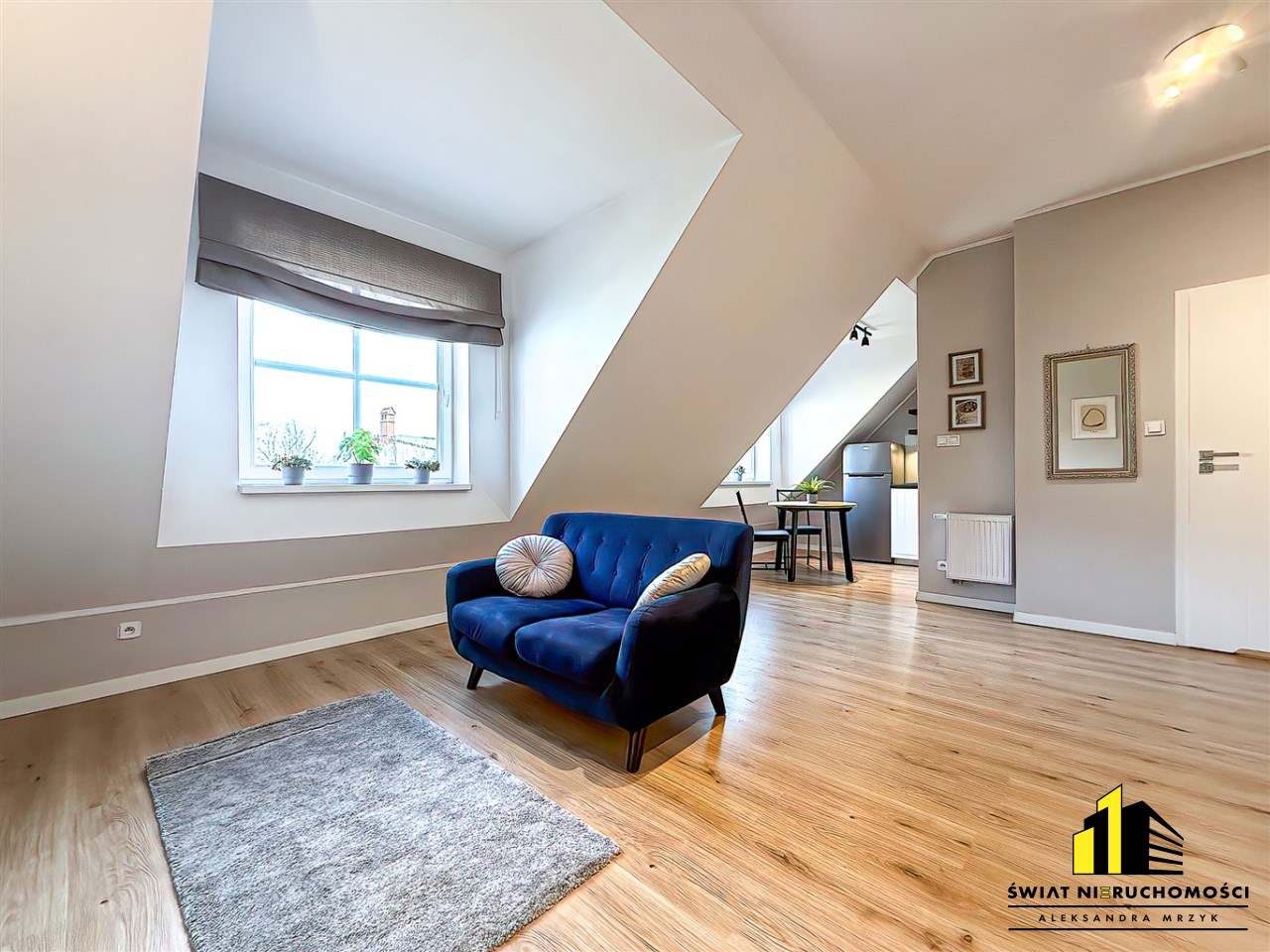 Mieszkanie zlokalizowane jest na poddaszu. Lokal jest jasny i przytulny, a duże okna zapewniają dobre doświetlenie pomieszczeń. Wnętrze zostało wykończone w neutralnym stylu, co pozwala na łatwą aranżację według własnych potrzeb.