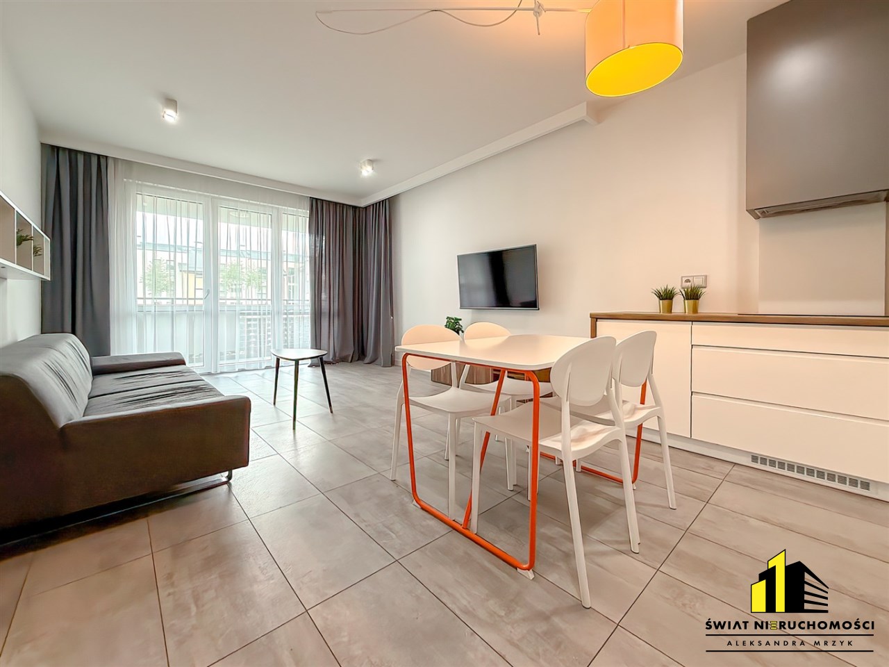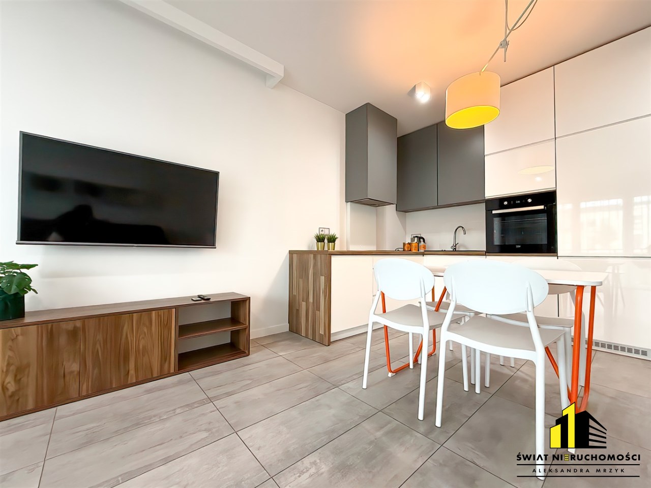 - Przestronny salon z aneksem kuchennym (kompletnie wyposażonym)